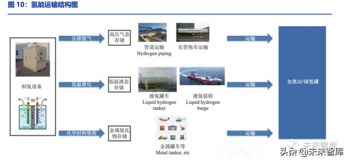 运量和运距决定储运的方式。各种储运方式都有自己的特点。我们认为,在当下氢能 产业仍处初期发展阶段,对于大规模、长距离运氢的需求不大,高压气态运氢最具性价比。但随着氢能产业快速发展,下游应用场景逐渐丰富,对于大规模、长距离运氢的需求将逐 渐增加,此时液氢输送的优势将会显现,并成为主流方式。在氢能发展的最终阶段,各类 储氢技术将更为成熟,我们认为将会形成多种氢储运路径并行的局面。(报告来源:未来智库)