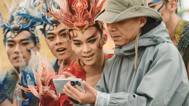 舞蹈分为“潜龙”“见龙”“飞龙”3个大的篇章,在展现形式上极具创新。其中“潜龙”的水世界为仿真水中环境,舞蹈演员模拟水中游动状态,用科技手段合成惊艳效果;“见龙”部分的“大地”用科技手段对滩涂地面纹理进行平整处理;在捕捉舞者表情特写时,巧用手机设备的“主角模式”追焦功能,不仅可以拍全景,还可以智能追焦主角,捕捉到主角的精彩瞬间,画面依旧清晰流畅;而手机的超强逆光拍摄能力也更好的呈现了神圣雪山下逆光而舞的画面。