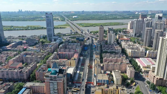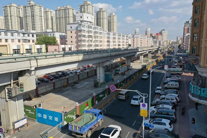 公路大桥站因地理环境复杂,施工难度大,中交一航局的建设者们创新工艺工法,高架桥下进行深基坑施工,这在哈尔滨地铁建设的历史上也当属首次。