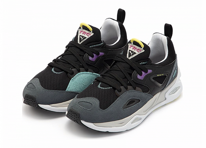 新款PUMA TRC Blaze以Trinomic缓震系统为基础,网眼鞋面嵌入绒面革鞋头和鞋跟覆盖层,搭配3D合成皮革A字型框架压纹,将复古感与现代技术结合,采用黑色与灰蓝撞色的配色。