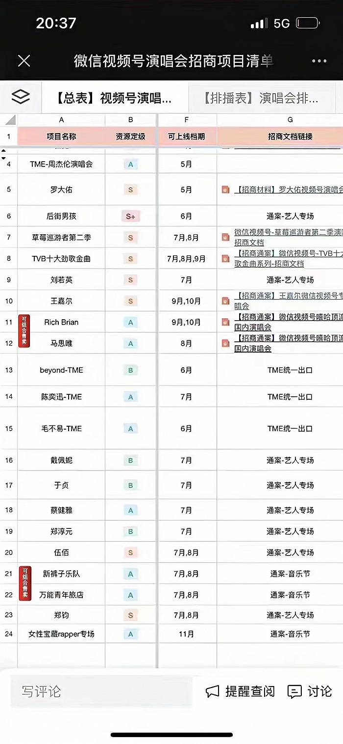 不仅筹备618电商节,微信将逐渐打法成型的视频号演唱会模式,也在紧锣密鼓地推广起来。从网传的微信视频号演唱会招商项目清单中,可以看到6-8月还有后街男孩、刘若英、伍佰等明星演出活动安排。