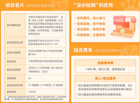 平安证券的付费投顾包,不仅包括了股票、公私募基金、固收、债券等配比甚至还有保险搭配,根据组合策略的选择不同,收费模式也不同,权益类占比达到85%-95%的组合策略,投顾服务费以1%/年计提,固收类占比70%-80%的策略则以0.6%/年的服务费计提。