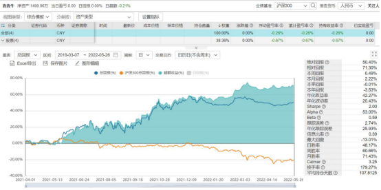 同为中金财富的主理人王义国,有23年投研经验,为首席投顾,曾获2018-2019年深圳市产业发展与创新人才奖,组合久富通八年总回报率577%,三年累计收益率146%,区间最大回撤14.8%,夏普比率1.83,月胜率72.2%,换手率12倍。