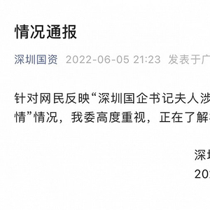 随着事情发酵,6月5日晚,深圳市国资委通报称,针对网民反映“深圳国企书记夫人涉车位纠纷舆情”情况,该委高度重视,正在了解核实。