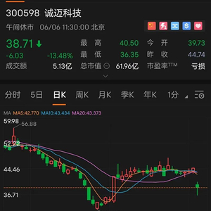 受此影响,诚迈科技6日大幅低开,盘中一度大跌近19%。截至早盘收市,该股跌约13.48%,成交5.13亿元,最新市值为61.96亿元。