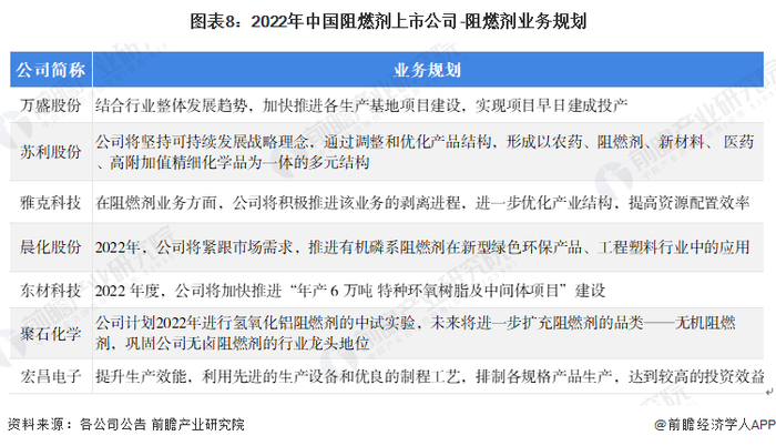 5、阻燃剂行业上市公司阻燃剂业务规划对比