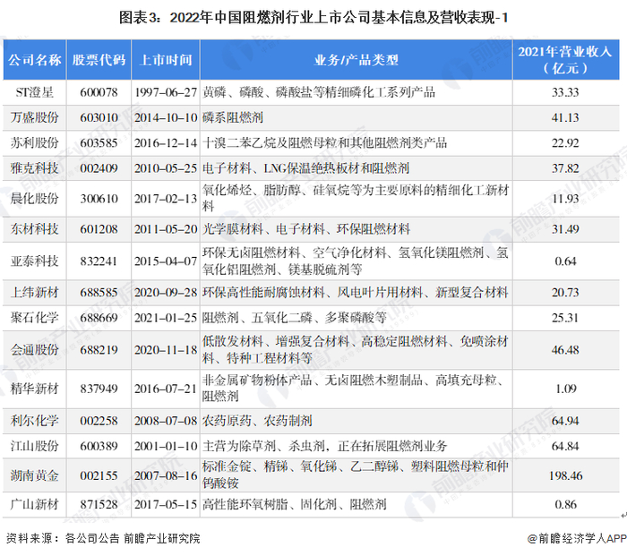 【全网最全】2022年阻燃剂行业上市公司全方位对比(附业务布局汇总、业绩对比、业务规划等)