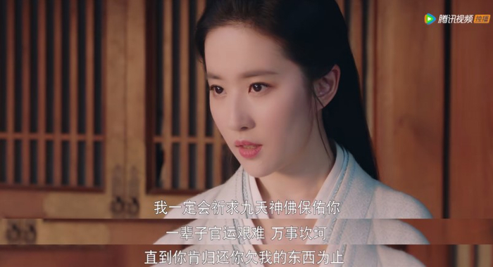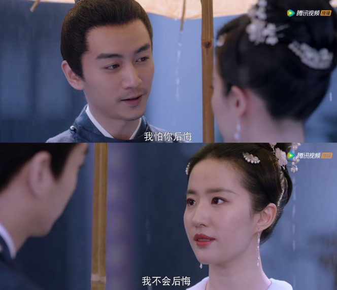 这段戏估计只有女性编剧才写得出来,细腻、真切、感伤,是一个处于“弱势”地位的女性爱上一个男性时的“人之常情”,而不是套路式的“我喜欢你但我遮掩着不说”或者“我喜欢你但我后知后觉”。刘亦菲演得也很好,梨花带雨、脆弱迷惘,凸显的反倒是赵盼儿的独立与清醒。