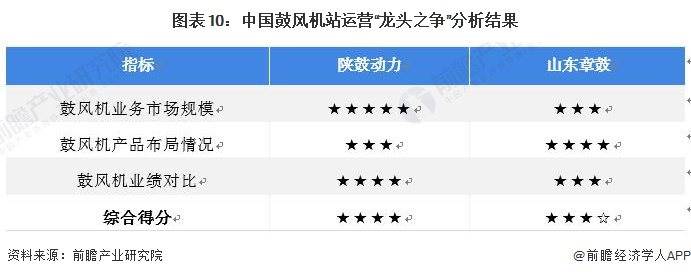 在中国鼓风机行业中,以陕鼓动力和山东章鼓为主要龙头企业。从规模上看,陕鼓动力公司规模远大于山东章鼓,因此鼓风机业务的规模也更大。而从鼓风机产品布局来看,陕鼓动力以鼓风机组中的离心鼓风机为主要产品,虽然下游应用行业较为丰富,但相比起来,山东章鼓的鼓风机产品更为丰富,技术也比较全面。从公司业绩来看,陕鼓动力业绩数额较高,但山东章鼓反映出来的盈利前景较好。基于前文分析结果,前瞻认为,陕鼓动力因在鼓风机市场规模占有优势,目前是我国鼓风机站运行企业中的“龙头”。