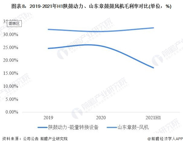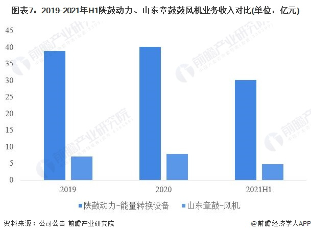 从鼓风机业务的经营情况来看,2019-2021年上半年,陕鼓动力的鼓风机业务收入均领先于山东章鼓,2021年上半年,陕鼓动力鼓风机相关业务(能量转换设备制造)实现收入30.18亿元,山东章鼓鼓风机相关业务(风机)实现收入4.75亿元。