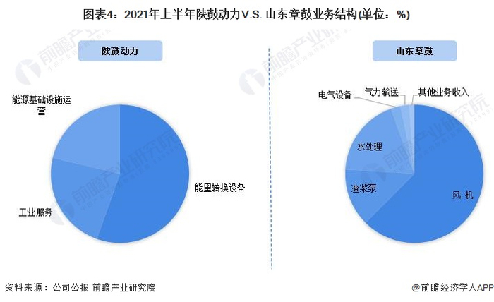 陕鼓动力能量转换设备制造包括各类透平压缩机、鼓风机、通风机、工业能量回收透平、汽轮机等,2021年上半年占营收比重为55.46%。