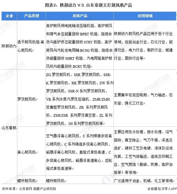 ——鼓风机产品布局:陕鼓动力覆盖行业广泛,山东章鼓产品更丰富