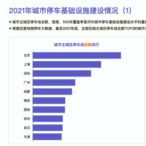 今年3月17日百度地图发布的《2021年度中国城市交通报告》(下称《报告》)对主城区停车场数量、密度以及500米覆盖率进行排名,筛选出排名前十、排名前二十的城市(注:主城区范围根据政府公开数据、百度地图地理数据、人口热力数据等综合分析确定)。