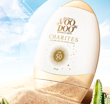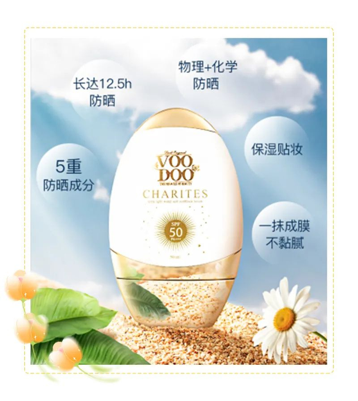 VOODOO防晒霜主要添加了生育酚(维生素E),在抵抗紫外线带来的光老化的同时,又能给晒后的肌肤进行修复。