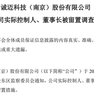 6月6日A股盘前,诚迈科技公告披露,该公司于6月2日接到浙江省金华市金东区监察委员会通知,诚迈科技实际控制人、董事长王继平被立案调查及实施留置措施。