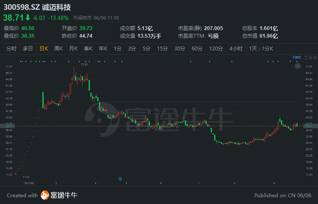 受此消息影响,6月6日诚迈科技低开逾11%,盘中最深跌近20%,截至午间收盘,跌幅收窄至13.48%,市值为62亿元。与此同时,国产软件板块震荡走强,中国软件、南威软件、金溢科技涨停,古鳌科技、卓易信息、金山办公、东软集团、绿盟科技、天喻信息、龙软科技、豪森股份、信安世纪等涨超5%。