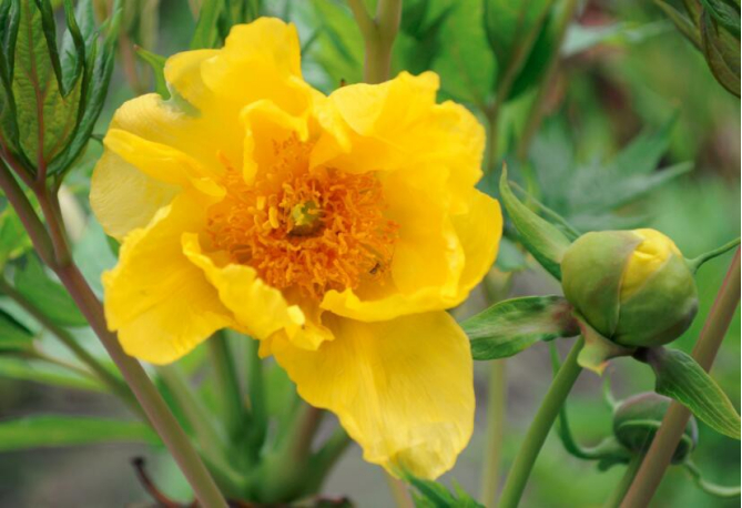 大花黄牡丹属落叶灌木,是藏东南地区特有的物种,仅分布于林芝巴宜区、米林和隆子县等海拔2900米至3200米的雅鲁藏布江河谷及山坡林缘,其中以米林县最为集中。大花黄牡丹是牡丹大家族中的“小弟弟”,1997年洪德元先生正式发表了大花黄牡丹亚种,大花黄牡丹的分类学地位才最终得以确立。它植株高大、花朵硕大而显著、心皮数较少,不同于滇牡丹,是极珍贵的牡丹观赏、育种材料,属于国家二级保护植物。由于大花黄牡丹对生长环境和周边生态环境要求极高以及人类活动的破坏,分布范围正日益缩小,已经被列入中国物种红色名录“极危”等级(CR)。