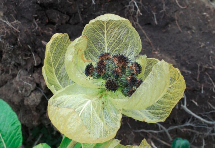 苞叶雪莲,菊科风毛菊属多年生草本,生长在海拔3200米至4700米高山草地、山坡多石处、溪边石隙处、流石滩,主要分布在藏东南和中部部分地区。尼泊尔、印度部分地区也有分布。苞叶雪莲头顶的一堆相互套叠的淡黄色苞叶,看起来像卷心菜,这些苞叶如同层层裹起的棉被,真正的花就藏在里面,在整个花、果、种子的生长过程中,它们都受到苞叶的悉心呵护。这个“卷心菜”一样的房子不仅保护花果和种子的生长,更重要的是它能够在夜晚给昆虫们提供很好的住宿。因为有了这个“卷心菜”状的“温室”,很多昆虫为了躲避高原夜间的严寒会躲进其中,无意中就沾染上了花粉,进而帮助花朵完成授粉任务。