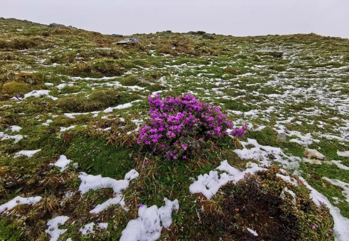 雪层杜鹃,是杜鹃花科杜鹃花属的一种常绿小灌木,分枝多而稠密,常平卧成垫状。它分布于中国西藏东南部、南部、东部及东北部,尼泊尔、印度、不丹等地也有分布。雪层杜鹃高60厘米至120厘米,花冠颜色多样,从鲜紫色至洋红色,或淡紫色至粉红色,宽漏斗状,生于海拔3200米至5800米的高山灌丛、冰川谷地、草甸,在西藏高山带分布非常广泛,是最具代表性的高山杜鹃种类,常形成以本种为优势的杜鹃矮灌丛。因其花朵美丽,具有较高的栽培和园艺价值。