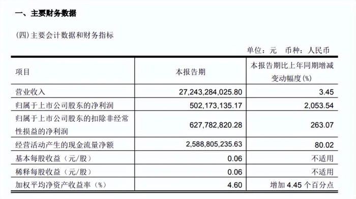 今年一季度,永辉实现营收272.43亿元,同比增长3.45%;归母净利润5.02亿元,同比增长2053.54%。