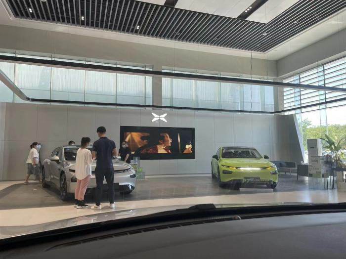 在一家小鹏授权经销商店中,此前需要等待两个月周期的小鹏P5,目前店内已有部分现车。
