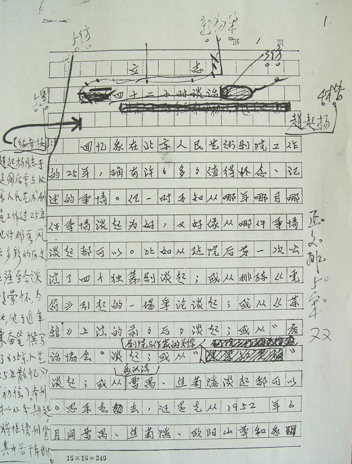 因此,我拿到的这份赵起扬手稿复印件,便尤显珍贵。2007年6月12日北京人艺戏剧博物馆建成开放后,它成为正式的展品,静陈于剧院创始人展厅一隅。十五年中,我带着各种各样的观众经过它,无数次地望向它——随着那上面的笔迹,那之中的思绪,这座殿堂的七十年奔涌而来。