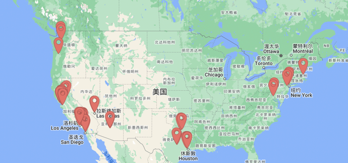 根据品牌美国网站的官方信息,目前线下可购买的点位主要集中在西海岸加州、华州、德州和部分东海岸城市,中部、北部基本尚未大规模涉猎。