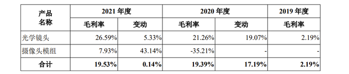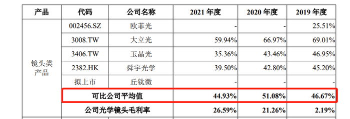 光学镜头毛利率远低于同行均值