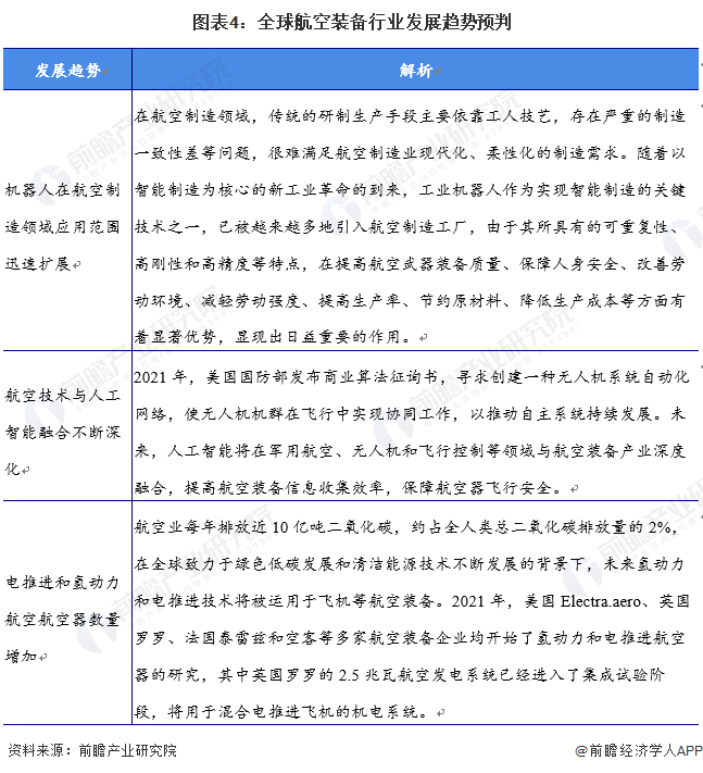 随着外部环境和航空装备行业发展情况的变化,前瞻认为未来全球航空装备行业发展将主要围绕着机器人、人工智能和清洁能源三大方向推进。