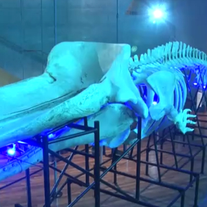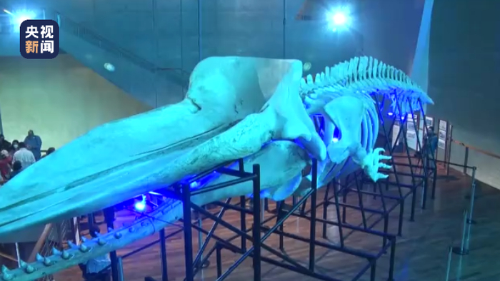 巴西国家博物馆展出罕见抹香鲸骨骼 复原长度15.7米