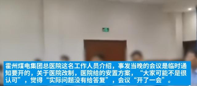 对此,霍州煤电总医院一位知情员工讲述,当天会议22时左右进行,涉改制方案,“会议上的事没什么处分”。该知情员工还透露,这件事确实发生了,会议是临时通知的“大家可能不是很认可”。