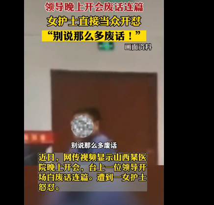 6月7日,据澎湃新闻视频报道,近日,在山西临汾,网传一医院开会,一名护士怼领导“别说那么多废话”,引发热议。