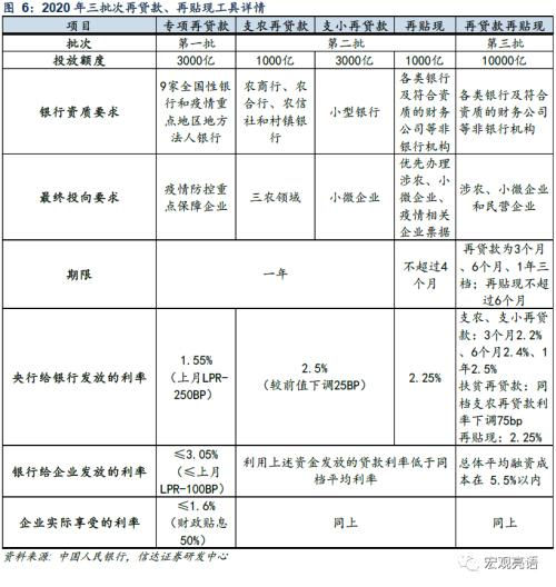 1)2020年:央行先后安排3000亿元专项再贷款、5000亿元再贷款再贴现额度、10000亿元再贷款再贴现额度,三批次共计1.8万亿元,支持抗疫保供、复工复产和中小微企业等实体经济发展。此外还创设普惠小微企业贷款延期支持工具、普惠小微企业信用贷款支持计划两项直达工具,共提供4400亿元再贷款资金,缓解中小微企业贷款的还本付息压力,提高小微企业信用贷款比例。