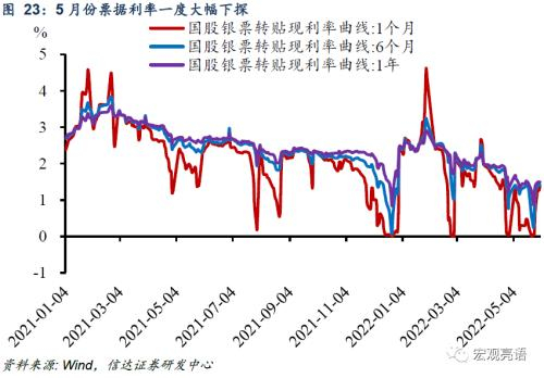 中长期内,资金面最宽松的时点已过。当前DR007、同业存单收益率等资金利率明显低于政策利率,背后原因在于大量流动性淤积在银行间市场。一方面货币、财政政策合力投放大量基础货币,另一方面实体融资需求偏弱,5月份以来票据利率大幅下探,反映出银行通过票据填充信贷规模,信贷投放阻力仍存。针对当前局面,未来货币政策重心在于提振实体融资需求,而非一味宽货币。