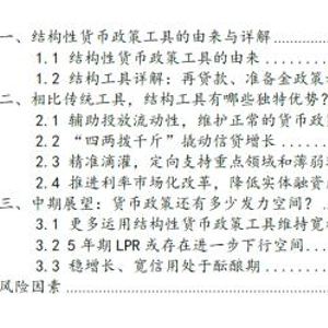 结构性货币政策工具详解:1)再贷款。2020年以来,再贷款在央行操作中的占比明显提升,除了增加支农、支小再贷款和再贴现等传统工具额度,还创设了碳减排工具、科技创新、交通物流领域等定向支持行业的专项再贷款。2)准备金政策。我国存款准备金制度于1984年建立,历经多次结构性调整,包括2004年实行差别存款准备金率制度、2011年正式引入差别准备金动态调整机制、2014年首次定向降准、2016年升级动态调整机制为MPA体系、2019年推出“三档两优框架”等。3)公开市场操作。明确属于结构工具的有TMLF、PSL以及CBS,传统的MLF、SLF等工具,实际上也具有结构性特征。
