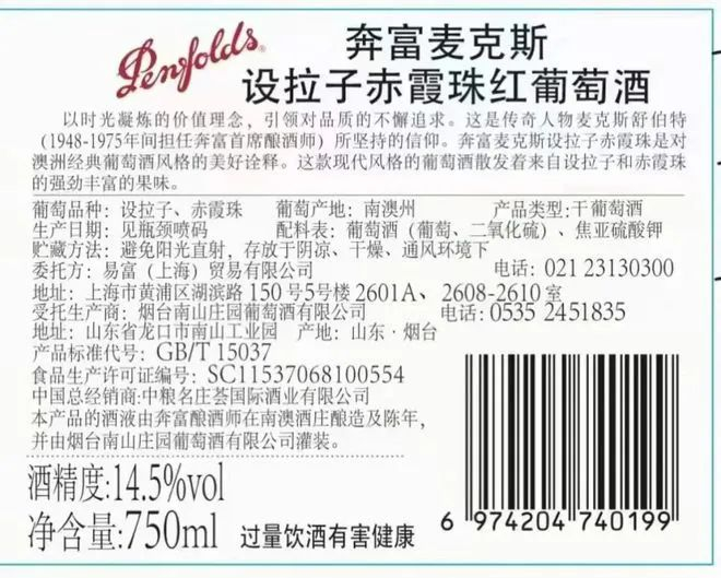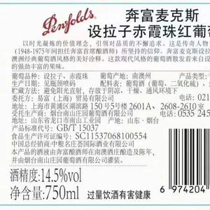 国产奔富麦克斯:烟台南山庄园葡萄酒有限公司灌装。