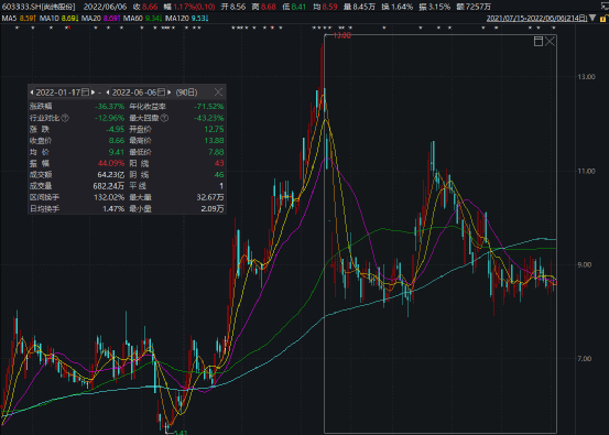 从股价表现来看,也是几经大涨大跌,波动较大。截至目前,该股报8.66元,总市值为54亿元。