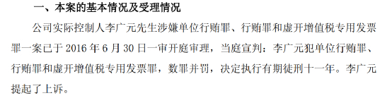 因涉嫌单位行贿罪、行贿罪 第一大股东被判有期徒刑11年