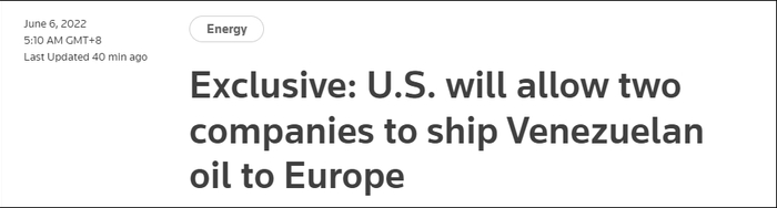 就在最近,路透社报道,美国已经允许意大利油企埃尼集团(Eni)和西班牙雷普索尔公司(Repsol)运送委内瑞拉的石油至欧洲。