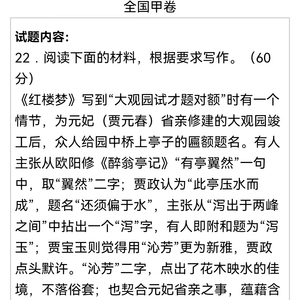 其中最引起网友讨论的是全国甲卷有关《红楼梦》“大观园试才题对额”的考题,冲上微博热搜的除了“高考作文”还有“高考作文 红楼梦”“全国甲卷 难”。澎湃新闻记者也第一时间联系了来自复旦大学、华东师范大学、同济大学的中文系教授,请他们评析今年的高考作文试题。
