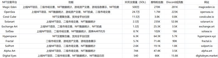 整理11个主流的Solana NFT交易平台,主要功能包括以下6种: