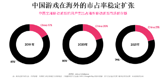 过去三年,中国游戏在海外的市占率稳定增长,2021年中国出海移动游戏的用户支出占海外移动游戏市场的份额21%,根据data.ai公布的2021年全球发行商52强名单,中国发行商首次超越美国日本,成为上榜数量最多的国家。而定位于全球化IP游戏生态公司的中手游,更是在海外市场实现了重大突破,在海外市场收入规模达到4.59亿元,增长主要来自于港澳台、东南亚和欧美。凭借海外市场同比7260%的增长速度,中手游入选了由data.ai评选的2022 Level Up年度发行商榜单中的“年度中国游戏厂商出海收入飞跃榜30强”。
