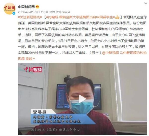 其次,两位年轻的中国留学生董恩盛和杜鸿儒在制作约翰·霍普金斯大学的疫情数据和相关地图中发挥重要作用,并不是最近才曝光的新鲜事,国内媒体早在2020年4月就对此详细报道过。