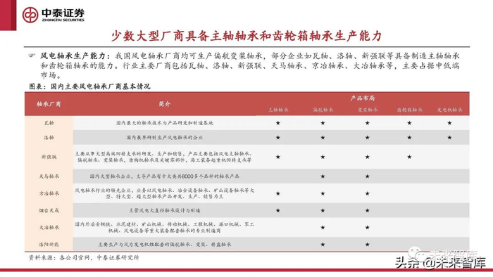 少数大型厂商具备主轴轴承和齿轮箱轴承生产能力