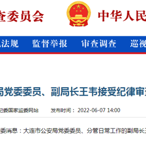 中央纪委国家监委网站6月7日信息显示,据大连市纪委监委消息:大连市公安局党委委员、分管日常工作的副局长王韦涉嫌严重违纪违法,目前正接受纪律审查和监察调查。