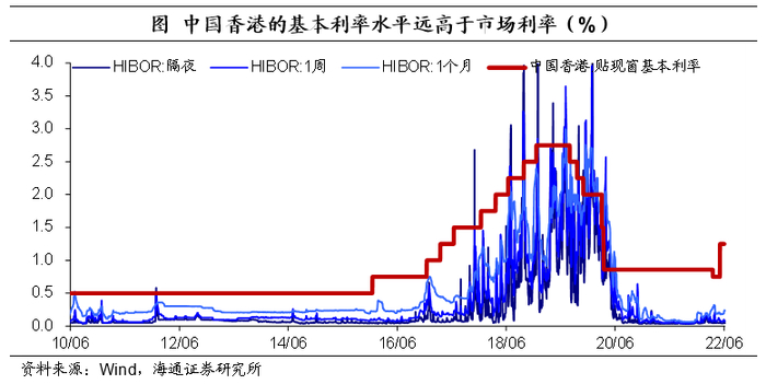 贴现窗利率可以说是市场利率的上限,在加息的时候,仅仅调整利率上限是不够的。因而无论金管局如何操作,对短期市场利率的影响都相对有限。截至6月2日,金管局贴现窗利率为1.25%,而市场短期利率普遍在0.3%以下。