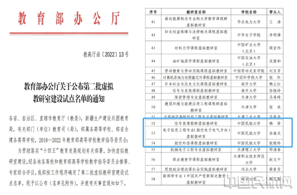 中航大3个虚拟教研室获批教育部虚拟教研室建设试点 获批数量位列全国第二