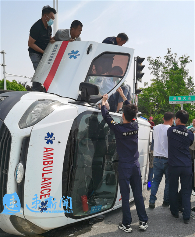 救护车急救途中侧翻,众人徒手掰车门救出5人