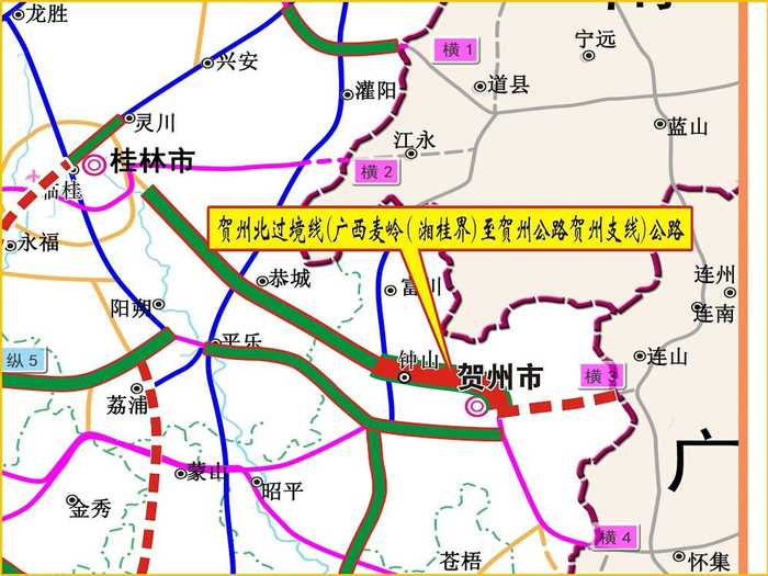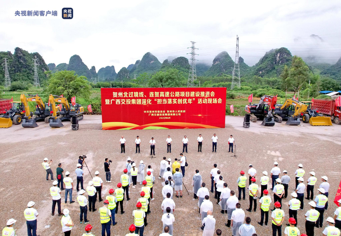 2022年6月8日,贺州北过境线(广西麦岭(湘桂界)至贺州公路贺州支线)、连山至贺州公路(广西段)两个项目全面动工,为贺州市经济发展提供交通支撑,助力推进东融工作。
