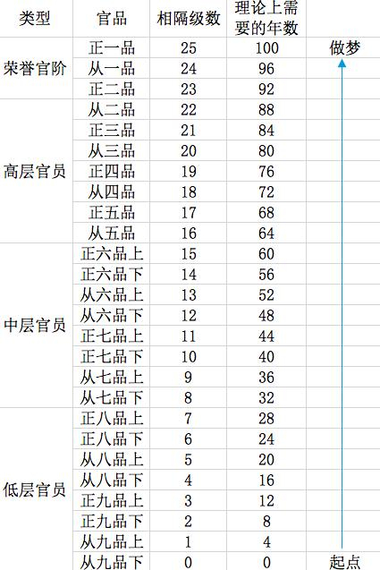 您起步是最低级的“从九品下”,距离七品的中层官职(县级)隔了8级,距离五品的高官(州级)隔了16级。也就是说,您用7年时间毕了业,然后马上考中明算科,再熬上64年不退休,就能当大官啦。